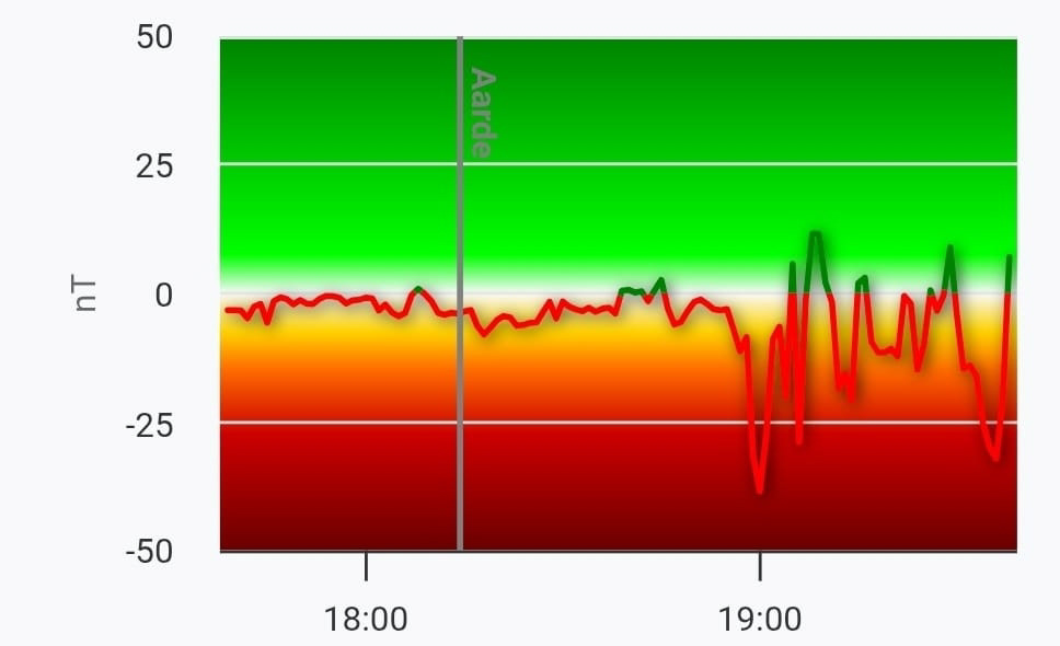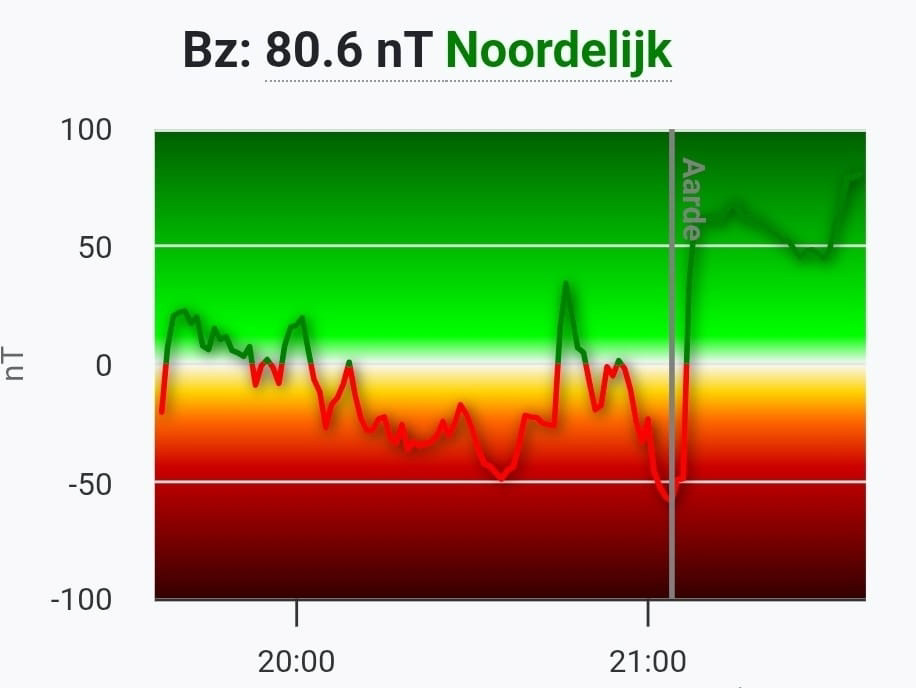 Inmiddels belanden we in de '' Flux rope '' van de CME. De BZ schiet direct naar het noorden naar ongekend hoge waardes. De show zal gezien de noordelijke manifestering van de bz dus weldra inzakken. Nog snel enkele plaatjes schieten voor het weer voorbij is dus.