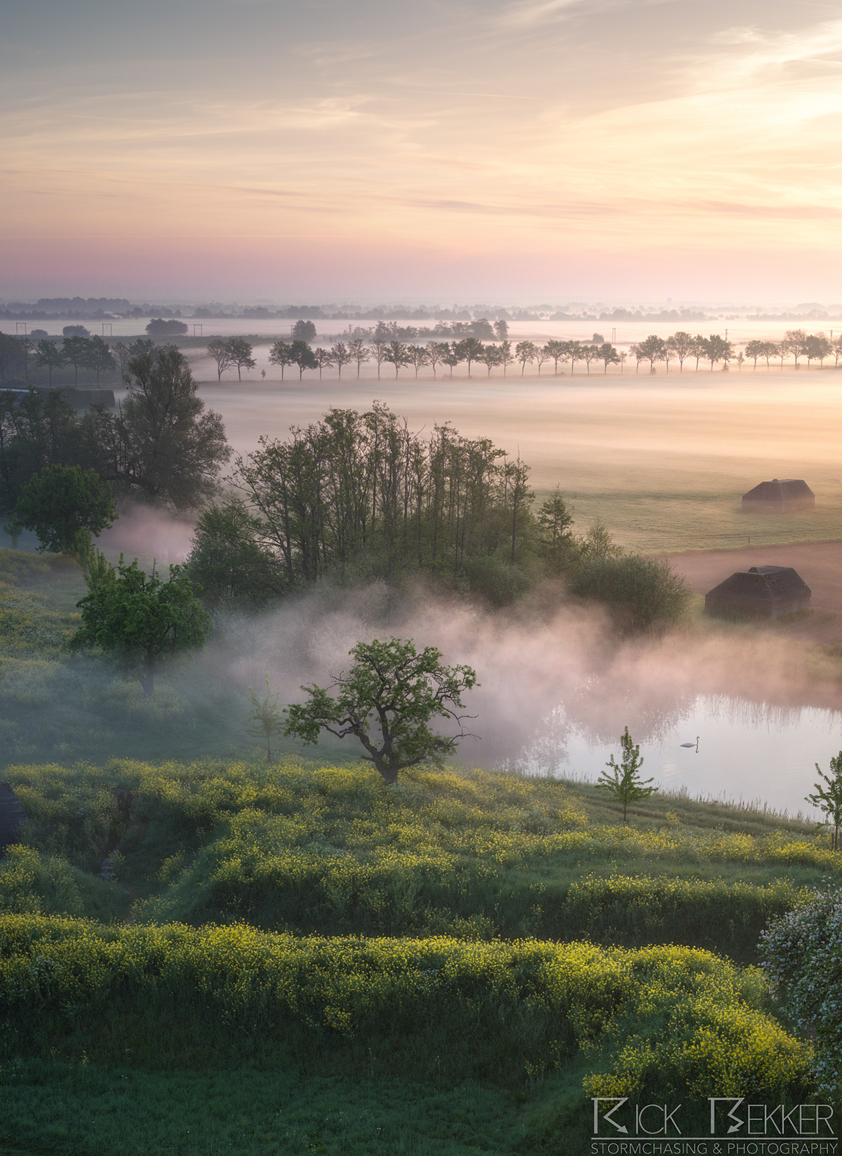 Of de mist nou bestaat uit enkele subtiele slierten, of zo dicht is dat het landschap voelt en oogt als een aquarium, mist maakt alles mysterieus. De eerste zonnestralen kleuren de lucht in tinten van roze, oranje en goud en geven het landschap een warme gloed. De natuur presenteert zichzelf op deze ochtenden op haar fraaiste manier.